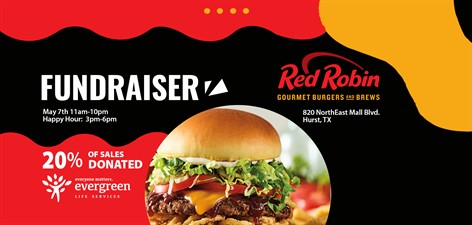 Join us for lunch or dinner, mention that you’re supporting Evergreen Life Services, and Red Robin will donate 20% of your bill back to us! Let your server know your support Evergreen!